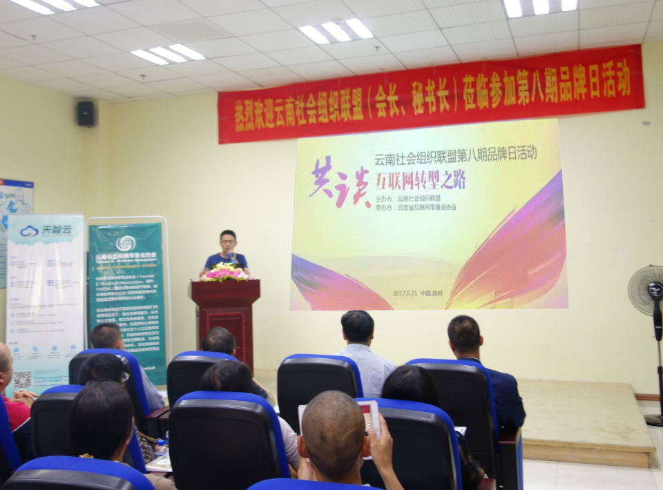 6月21日,由云南社會組織聯(lián)盟主辦、云南省互聯(lián)網(wǎng)零售業(yè)協(xié)會協(xié)辦的“云南社會組織聯(lián)盟第八期品牌日活動暨共談互聯(lián)網(wǎng)轉型之路”圓滿舉辦。來自云南60余個協(xié)會、商會的會長或秘書長參加了活動?;顒蛹由盍藚f(xié)會、商會之間的相互交流和了解,促進了品牌企業(yè)的特色產(chǎn)品或服務宣傳,實現(xiàn)了跨行業(yè)跨界的合作和強強聯(lián)誼。
