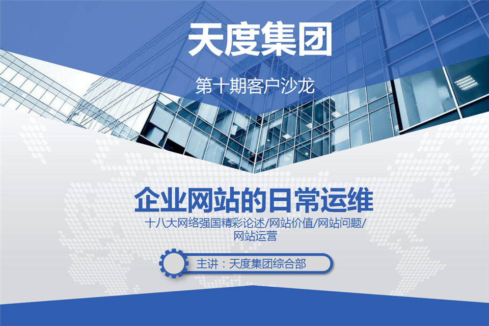 企業(yè)網(wǎng)站建設(shè)是企業(yè)文化的組成部分,對企業(yè)形象的建立和企業(yè)知名度的提高起著至關(guān)重要的作用,是企業(yè)實(shí)現(xiàn)”互聯(lián)網(wǎng)+“產(chǎn)業(yè)轉(zhuǎn)型的重要手段。建一個(gè)網(wǎng)站,對于大多數(shù)人并不陌生。尤其是已經(jīng)擁有自己網(wǎng)站的企業(yè)和機(jī)構(gòu)。但是提到網(wǎng)站運(yùn)營可能特別多人不理解,對網(wǎng)站運(yùn)營的重要性也不明確,通常被忽視。故此天度集團(tuán)專門針對“企業(yè)站的日常運(yùn)維”展開了第十期客戶沙龍。
