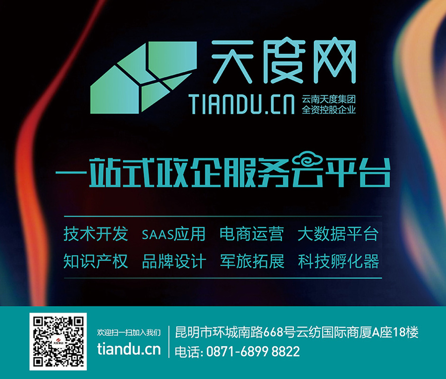 天度網(wǎng)“政企上云”計劃將于近期正式開啟(一站式政企服務(wù)云平臺屆時將同步上線),云產(chǎn)品、云應(yīng)用、云服務(wù),盡在天度網(wǎng),敬請關(guān)注!服務(wù)咨詢、招商合作熱線:0871-6899 8822