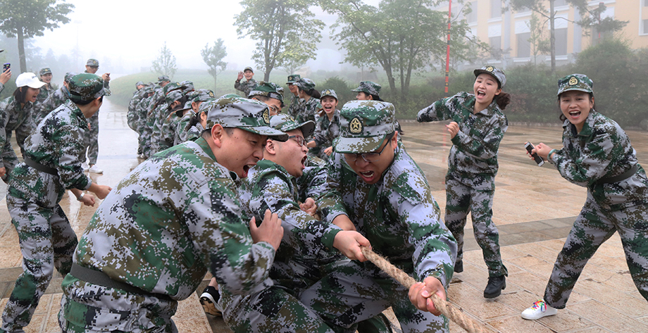 相比較剛開始的魔鬼訓(xùn)練,之后就輕松了一些,一來是大家已經(jīng)適應(yīng)這種節(jié)奏了,二來教官也在日常訓(xùn)練過程中加入了一些趣味活動(dòng)。例如以公司為單位的拔河比賽,雖然場(chǎng)地濕滑,狀況百出,但是大家誰都不肯服輸,賽場(chǎng)上的氣勢(shì)如虹破竹。