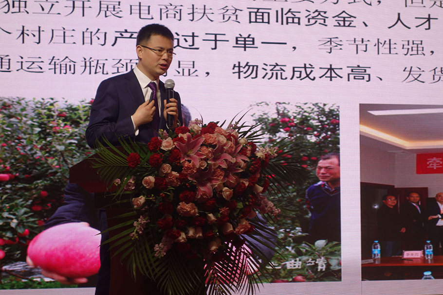 天津大學(xué)深圳研究院常務(wù)副院長原天津大學(xué)派駐甘肅省隴南市宕昌縣沙灣鎮(zhèn)大寨村黨支部書記宋鵬作《鄉(xiāng)村戰(zhàn)略背景下農(nóng)村電商扶貧探索與實踐》主題發(fā)言。