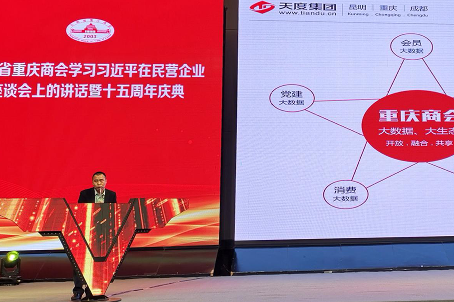 2018年12月21日下午,云南省重慶商會(huì)在云安會(huì)都國際會(huì)議中心隆重舉行主題為《云南省重慶商會(huì)學(xué)習(xí)習(xí)近平總書記在民營企業(yè)座談會(huì)上的講話暨十五周年》活動(dòng),云南省人民政府副省長王顯剛,云南省政協(xié)副主席、省工商聯(lián)主席喻頂成等領(lǐng)導(dǎo)出席了會(huì)議,天度集團(tuán)董事長鄭桂文現(xiàn)場對“商會(huì)大數(shù)據(jù)”建設(shè)情況進(jìn)行介紹并出席了大數(shù)據(jù)平臺啟動(dòng)儀式。