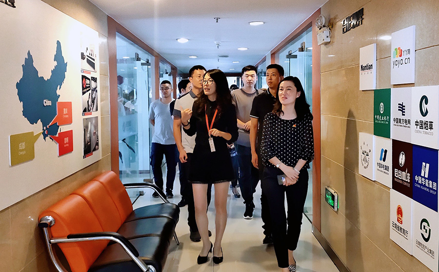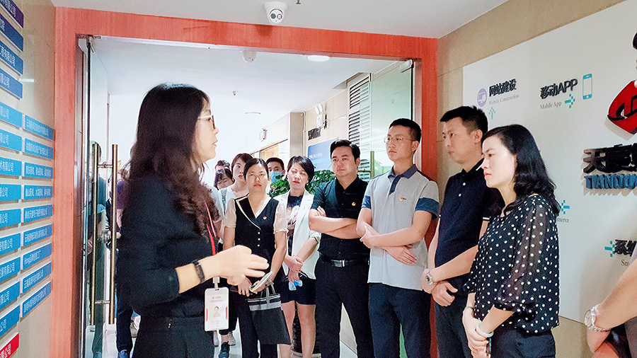 2020年7月7日下午,共青團臨滄市委書記丁玲一行15人在共青團昆明市委副書記林勤同志及共青團西山區(qū)委書記吳陽青同志的陪同下來到天度集團,圍繞青年電商創(chuàng)業(yè)、直播帶貨、電商扶貧等內(nèi)容進行考察交流