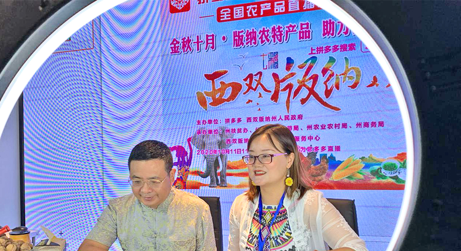 2020年10月11日,由拼多多、西雙版納傣族自治州人民政府、州扶貧辦、州文化和旅游局、州農(nóng)村農(nóng)業(yè)局、州商務(wù)局、州電子商務(wù)公共服務(wù)中心聯(lián)合舉辦的助農(nóng)直播活動(dòng)在州電子商務(wù)公共服務(wù)中心舉行。