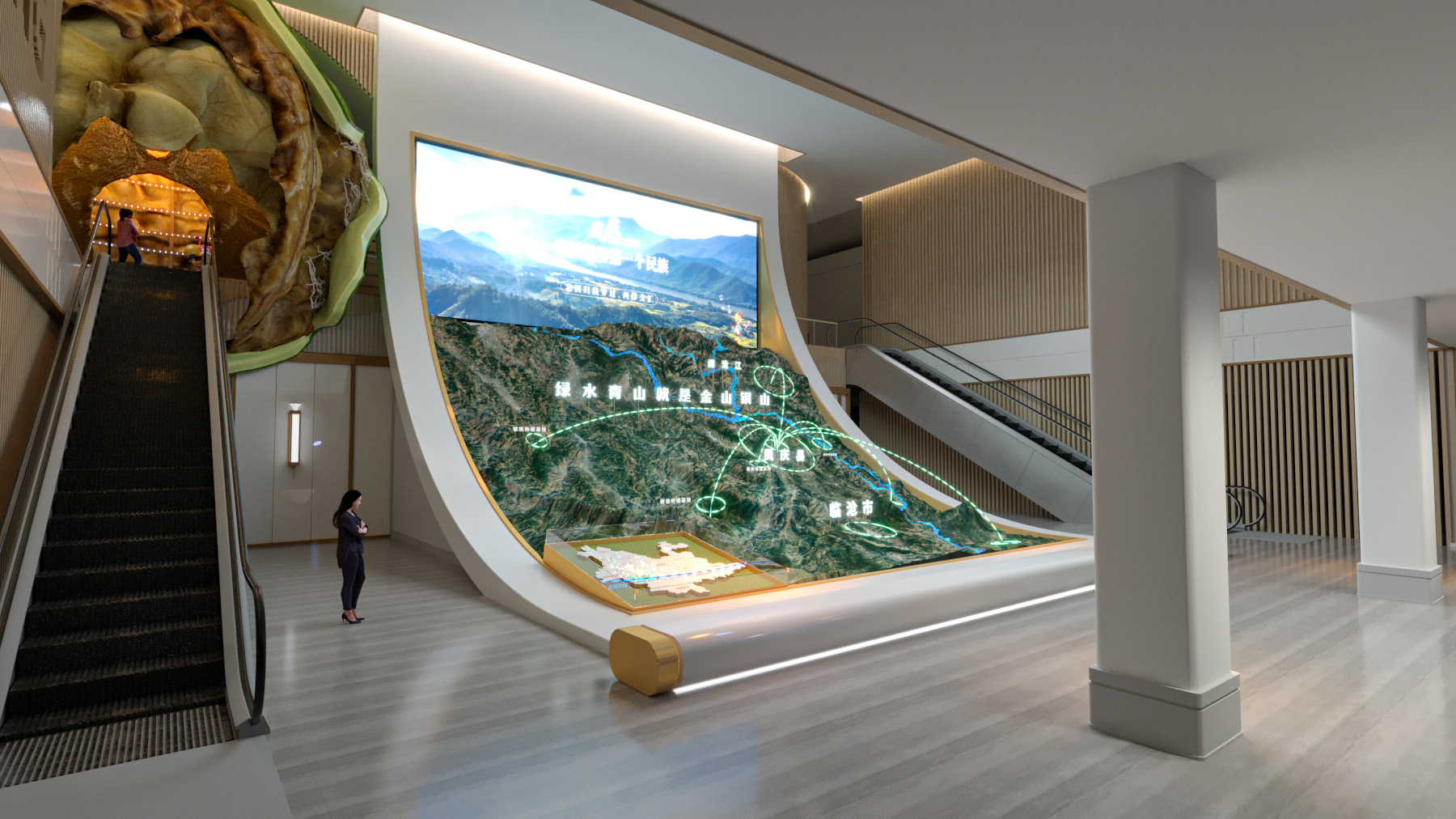 數(shù)字沙盤的運(yùn)用能夠?qū)⑵髽I(yè)的空間布局和發(fā)展規(guī)模都生動(dòng)形象的表現(xiàn)出來,能夠讓觀眾一目了然,展示效果直觀有震撼力。數(shù)字展廳要傳達(dá)什么內(nèi)容和信息,需要通過鮮明的主題來展示給觀眾,因此,在進(jìn)行展廳設(shè)計(jì)之前,必須對(duì)主題定位準(zhǔn)確,通過相應(yīng)的焦點(diǎn),再配合適當(dāng)?shù)纳省D標(biāo)與裝飾,以協(xié)調(diào)一致、突出重點(diǎn)的方式來達(dá)到傳遞;設(shè)計(jì)材質(zhì)選擇時(shí)不宜太過于古板,也不適合選擇過于跳躍性的顏色,無論是顏色抑或是數(shù)字展廳主要材質(zhì)都要讓人感覺到大氣、高雅、莊重,因此要選擇合適的顏色來裝飾展廳;設(shè)計(jì)可以靈活運(yùn)用多媒體展項(xiàng),靈活運(yùn)用各類多元化的展示技術(shù),采用聲光電結(jié)合硬裝造型來提升參觀者體驗(yàn),避免枯燥乏味傳統(tǒng)展廳展示形式,影響整體品位和形象。
