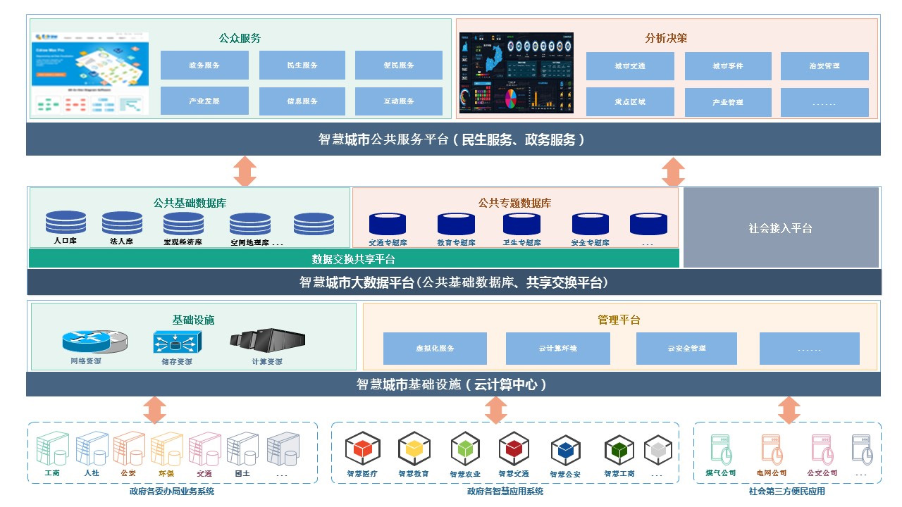 依托互聯(lián)網(wǎng)、云計(jì)算、大數(shù)據(jù)、物聯(lián)網(wǎng)、空間地理信息等現(xiàn)代科技和信息化手段,強(qiáng)化信息資源跨界融合運(yùn)用,大力推進(jìn)跨部門、跨系統(tǒng)、跨行業(yè)的數(shù)字資源利用,匯聚政務(wù)、企業(yè)、個(gè)人、感知等數(shù)據(jù)及資源,及時(shí)感測、收集、分析和運(yùn)用城市及產(chǎn)業(yè)信息,解決交通擁堵、預(yù)警滯后、環(huán)境污染、資源分配失衡、人口膨脹、城市脆弱等一系列“城市病”;通過數(shù)據(jù)治理形成城市人口、法人、宏觀經(jīng)濟(jì)、地理空間等基礎(chǔ)數(shù)據(jù)庫和各行業(yè)專項(xiàng)數(shù)據(jù)庫,達(dá)到城市數(shù)據(jù)縱向清晰、橫向關(guān)聯(lián),深度分析與挖掘城市數(shù)據(jù),為民生應(yīng)用、企業(yè)發(fā)展、政府決策提供智慧支撐, 推進(jìn)城市規(guī)劃、建設(shè)、運(yùn)行、服務(wù)、綜合管理、應(yīng)急處置智能化。