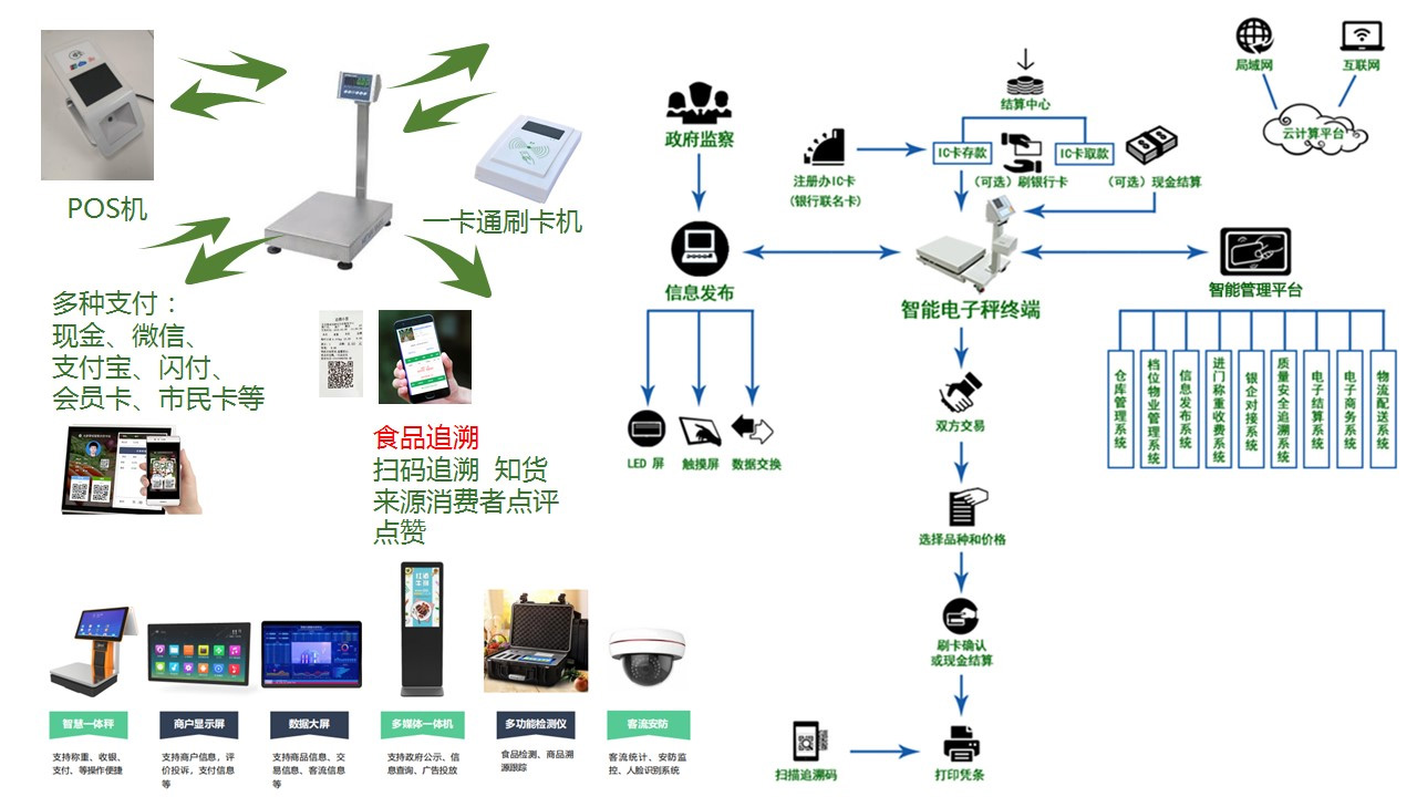 利用物聯(lián)網(wǎng)、云計(jì)算、大數(shù)據(jù)、人工智能、區(qū)塊鏈等信息技術(shù),為市場配備了智慧電子稱、商戶屏、攝像監(jiān)控等設(shè)備及智慧管理平臺(tái),涵蓋“市場、商戶、物業(yè)、經(jīng)營、場務(wù)、數(shù)據(jù)、設(shè)備”各方面管理,實(shí)現(xiàn)市場可管控、可感知、可追溯、合同電子化、收費(fèi)智能化、運(yùn)營智慧化、數(shù)據(jù)一體化,極大降低了人工成本。利用AI技術(shù),實(shí)現(xiàn)水電、停車、人員、防疫等的智能管理,促進(jìn)市場有序高效運(yùn)行,同時(shí)大數(shù)據(jù)實(shí)時(shí)記錄公開透明,產(chǎn)品價(jià)格、農(nóng)殘檢測、產(chǎn)品溯源、商戶證照信息一目了然,交易可追溯,讓老百姓的"菜籃子”拎得更舒心、放心、開心。