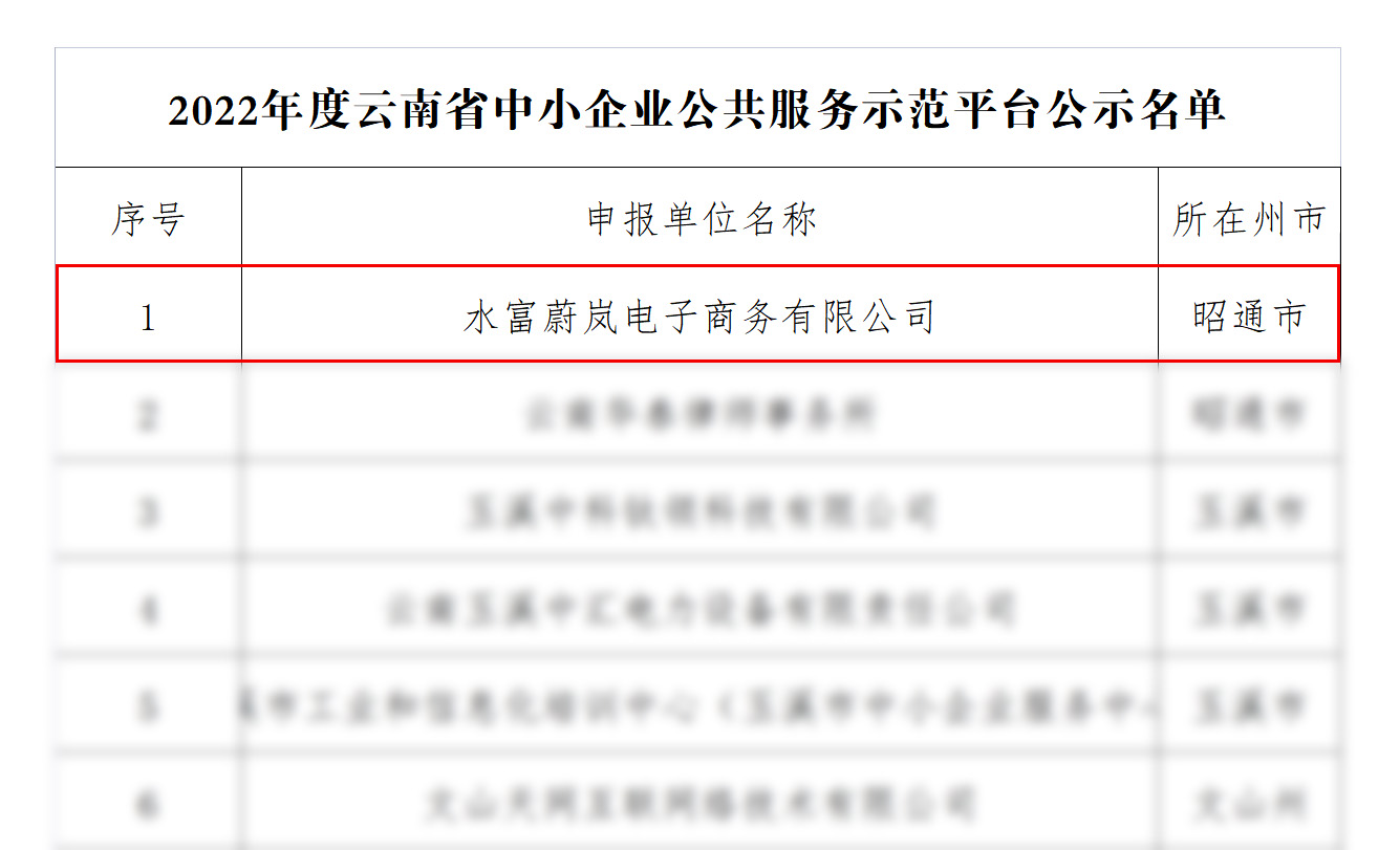 水富蔚嵐電子商務(wù)有限公司獲“省級中小企業(yè)公共服務(wù)示范平臺”認定