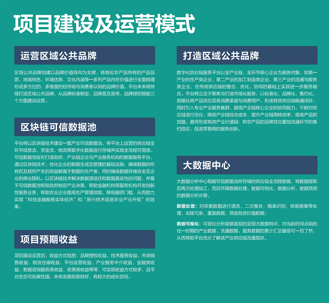平臺將以區(qū)塊鏈技術(shù)建設(shè)一套產(chǎn)業(yè)可信數(shù)據(jù)池,將平臺上運營的供應(yīng)鏈全環(huán)節(jié)信息流、資金流、物流等數(shù)字化數(shù)據(jù)進行存儲并實現(xiàn)全流程可溯源??尚艛?shù)據(jù)池旨在打造政府、產(chǎn)業(yè)鏈企業(yè)與產(chǎn)業(yè)服務(wù)機構(gòu)的數(shù)據(jù)服務(wù)平臺,通過區(qū)塊鏈技術(shù),優(yōu)化企業(yè)的數(shù)據(jù)生成及管理的基礎(chǔ)設(shè)施,確保數(shù)據(jù)的所有權(quán)及其所產(chǎn)生的效益都屬于數(shù)據(jù)的生產(chǎn)者,同時確保數(shù)據(jù)存儲安全及企業(yè)的商業(yè)隱私。以區(qū)塊鏈技術(shù)解決數(shù)據(jù)源信任和數(shù)據(jù)真實性的問題,并基于可信數(shù)據(jù)池幫助政府制定產(chǎn)業(yè)決策,幫助金融機構(gòu)等服務(wù)機構(gòu)開發(fā)創(chuàng)新性服務(wù)業(yè)務(wù),幫助農(nóng)業(yè)企業(yè)提高生產(chǎn)管理效能,降低融資門檻,從而助力實現(xiàn)“科技金融服務(wù)實體經(jīng)濟”和“新興技術(shù)促進農(nóng)業(yè)產(chǎn)業(yè)升級”的效果。
