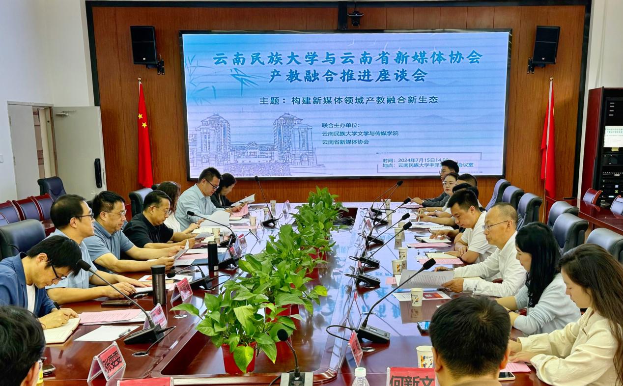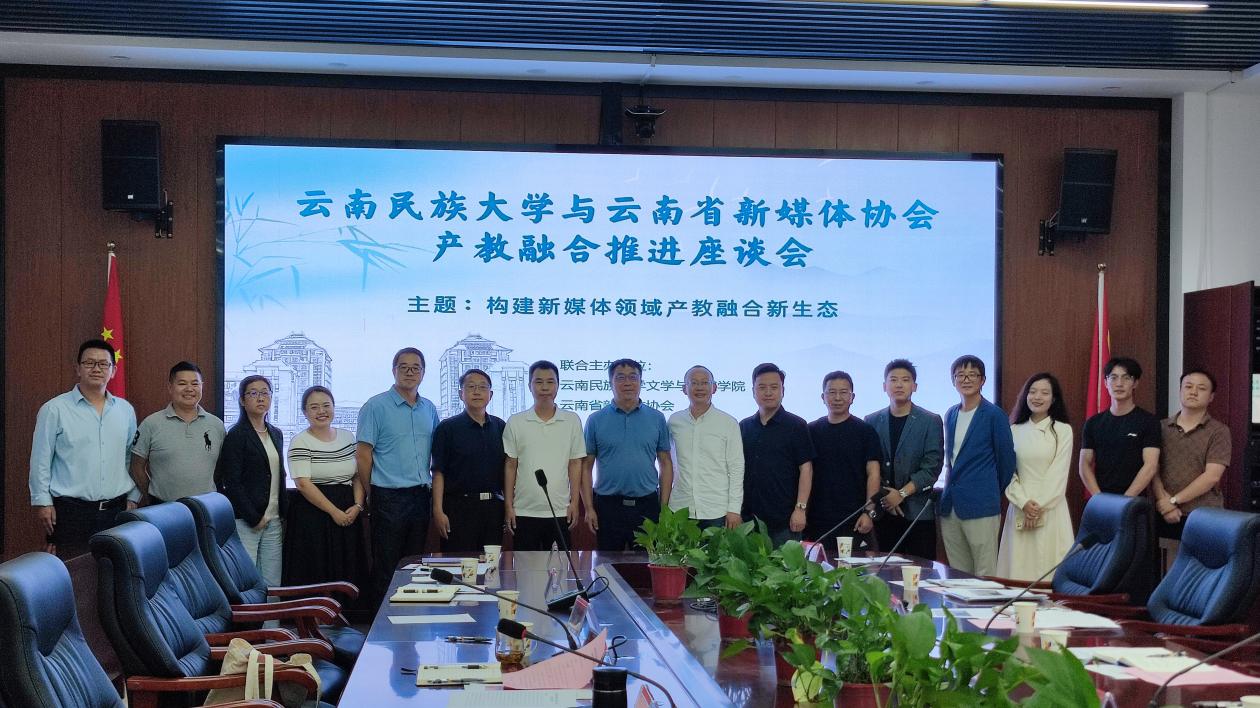 文學(xué)與傳媒學(xué)院副院長陳順堯、許麗華,學(xué)校教務(wù)處教學(xué)研究科科長張勝婷,學(xué)院新聞系主任張雯雯等與會人員圍繞如何進(jìn)一步深化校企合作和產(chǎn)教融合,完善人才培養(yǎng)模式,新媒體賦能云南經(jīng)濟(jì)社會發(fā)展、推動大學(xué)生實踐實訓(xùn)與就業(yè)創(chuàng)業(yè)等內(nèi)容踴躍發(fā)言。大家一致認(rèn)為,云南省新媒體協(xié)會與云南民族大學(xué)聯(lián)合相關(guān)高校、企業(yè)啟動“產(chǎn)教融合共同體”創(chuàng)建工作,并同步推動成立“高校專委會”,建設(shè)開放型公共實踐實訓(xùn)基地,不僅滿足社會對創(chuàng)新型高質(zhì)量人才的需求,對推進(jìn)高校教學(xué)改革、提升技術(shù)技能人才培養(yǎng)質(zhì)量,促進(jìn)全省新媒體領(lǐng)域的教育與產(chǎn)業(yè)協(xié)同發(fā)展也具有重要意義。